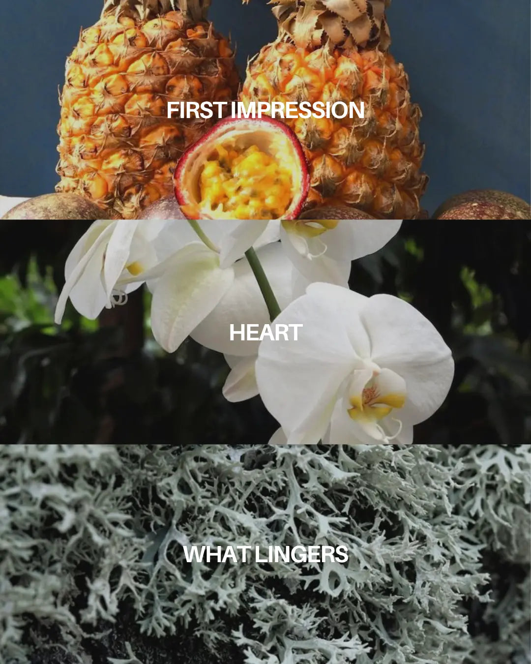 Pineapple and passionfruit explode into peony and jasmine with a musky base that lingers.