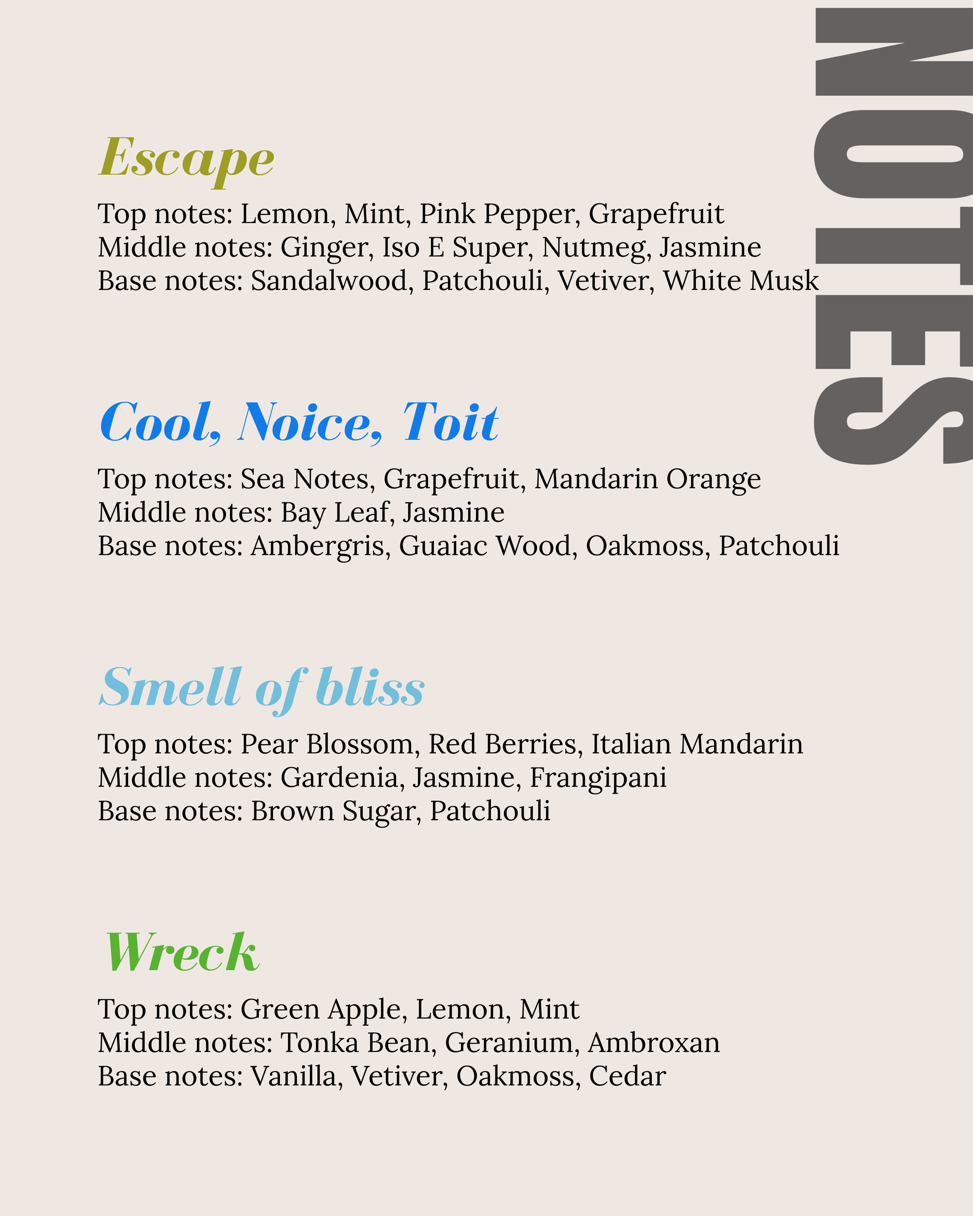 Fresh, Uplifting, Balanced: For slow mornings, deep breaths, and effortless days. A lineup that feels like clean air, cool water, and a clear head.
