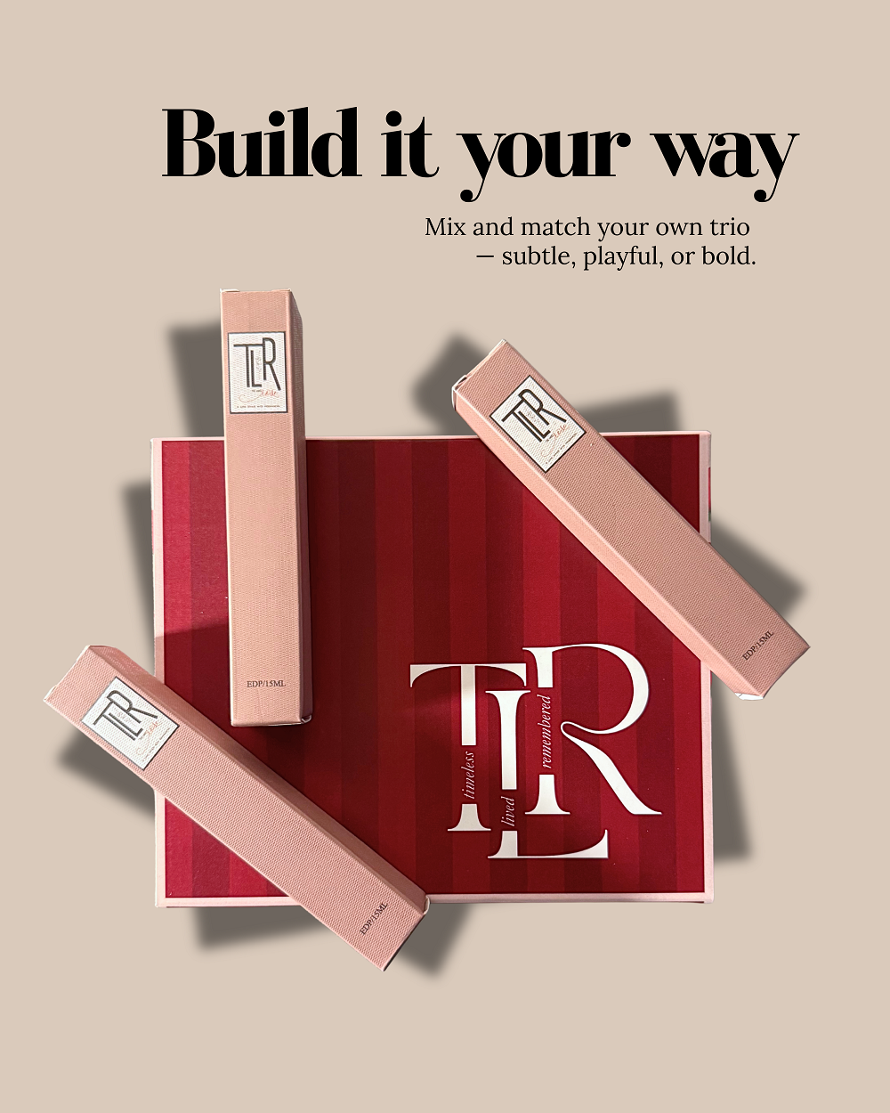 Three signature TLR scents that cover it all: work, weekends, and wow-nights.